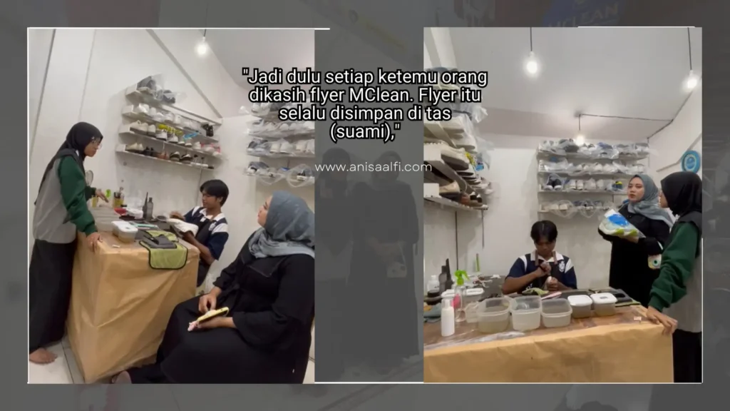 “Jadi setiap ketemu orang dikasih flyer MClean yang selalu disimpen di dalam tasnya (suami)”